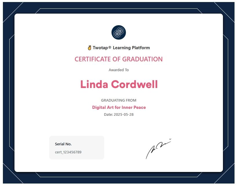 Join Digital Art for Inner Peace and get lifetime access to all modules, with gentle lessons and mindful exercises you can revisit anytime. You’ll also receive a Certificate of Completion as a meaningful reminder of your journey.