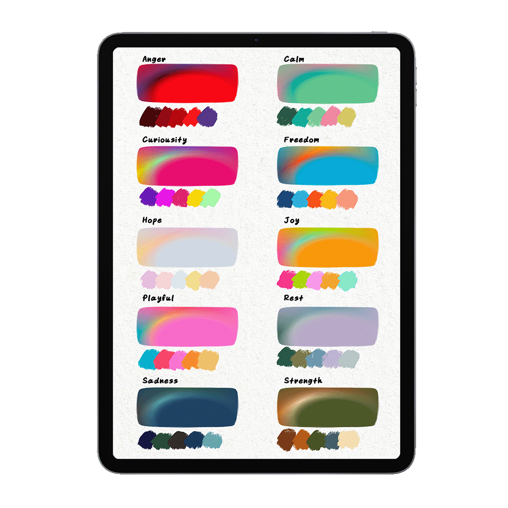 A set of 10 emotion-inspired color palettes designed to help you express different moods through your art and make your therapeutic art practice feel more personal and intuitive.