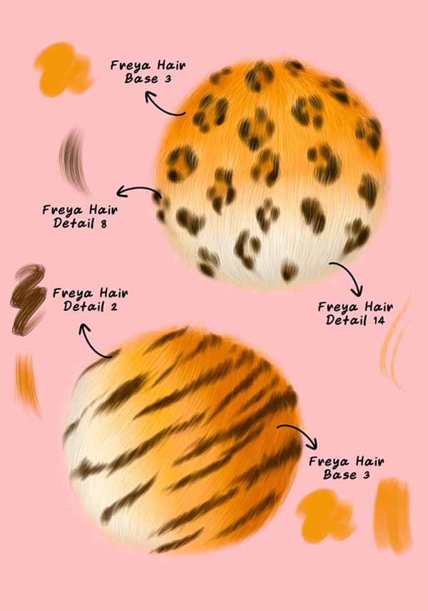 These 33 specialized brushes are made to help you paint fur the easy way. They give you real texture in a single stroke, but you still stay in control of the light, the colors, and the small details that make animals look exactly right.