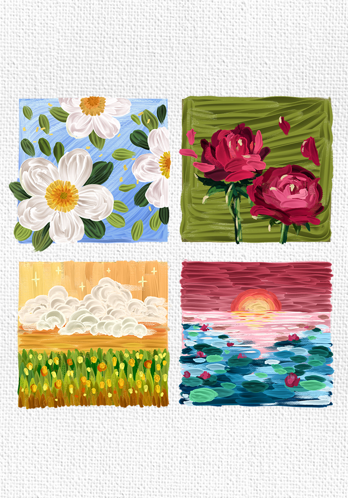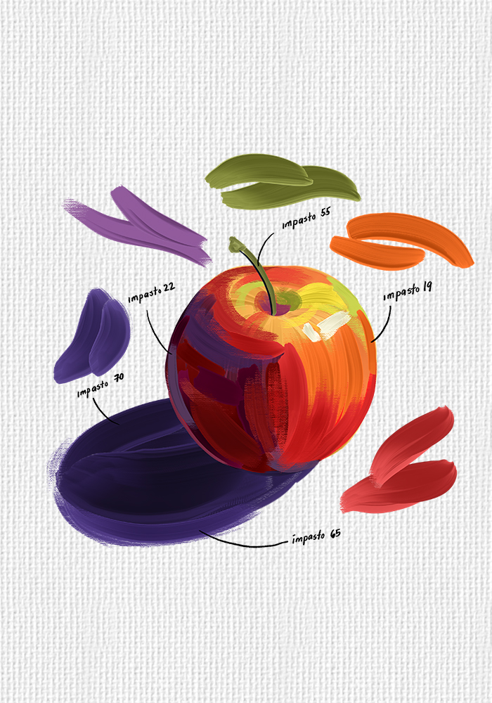 These 70 custom brushes capture every ridge, valley, and juicy paint stroke of real impasto techniques. All examples below are made with just these brushes.